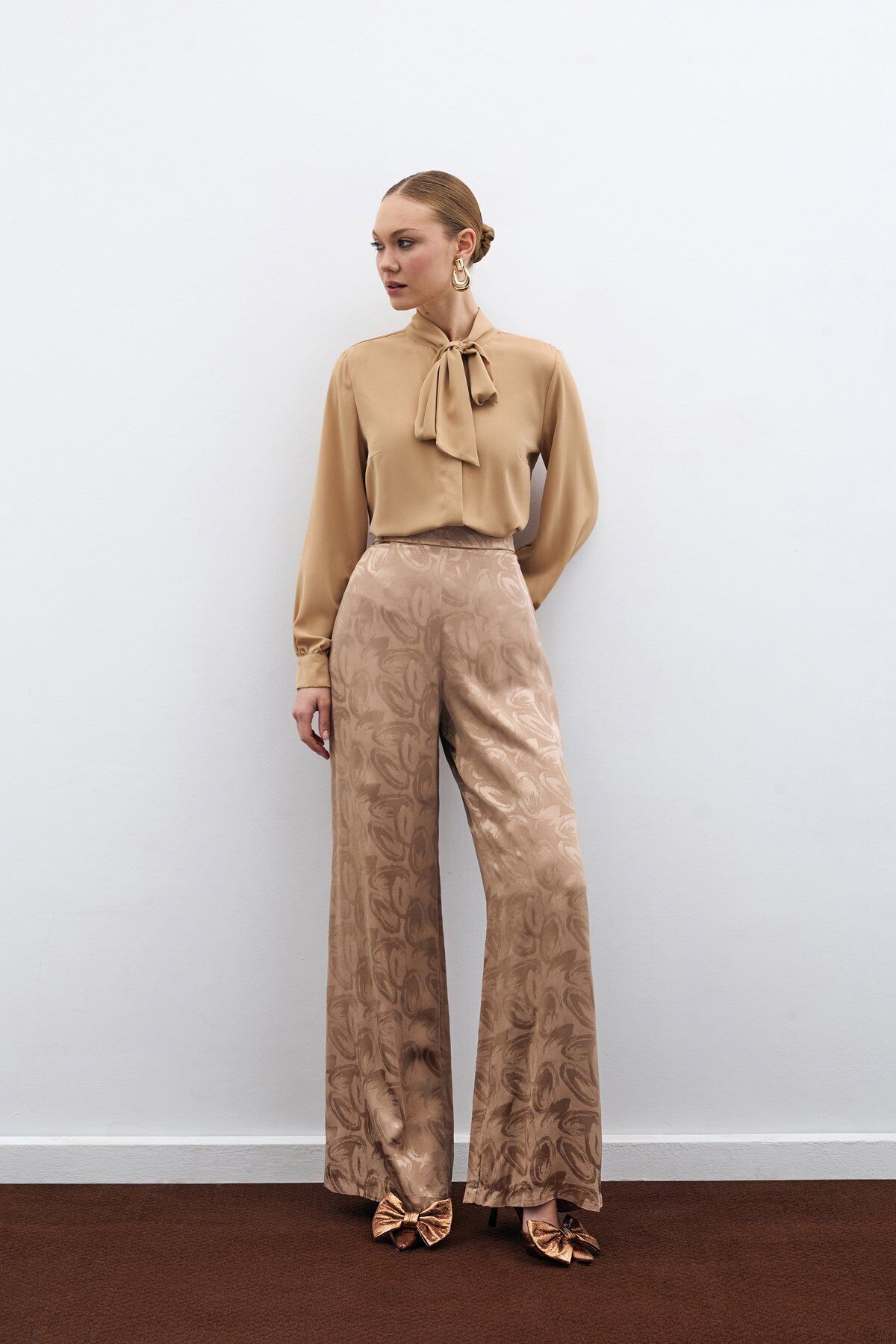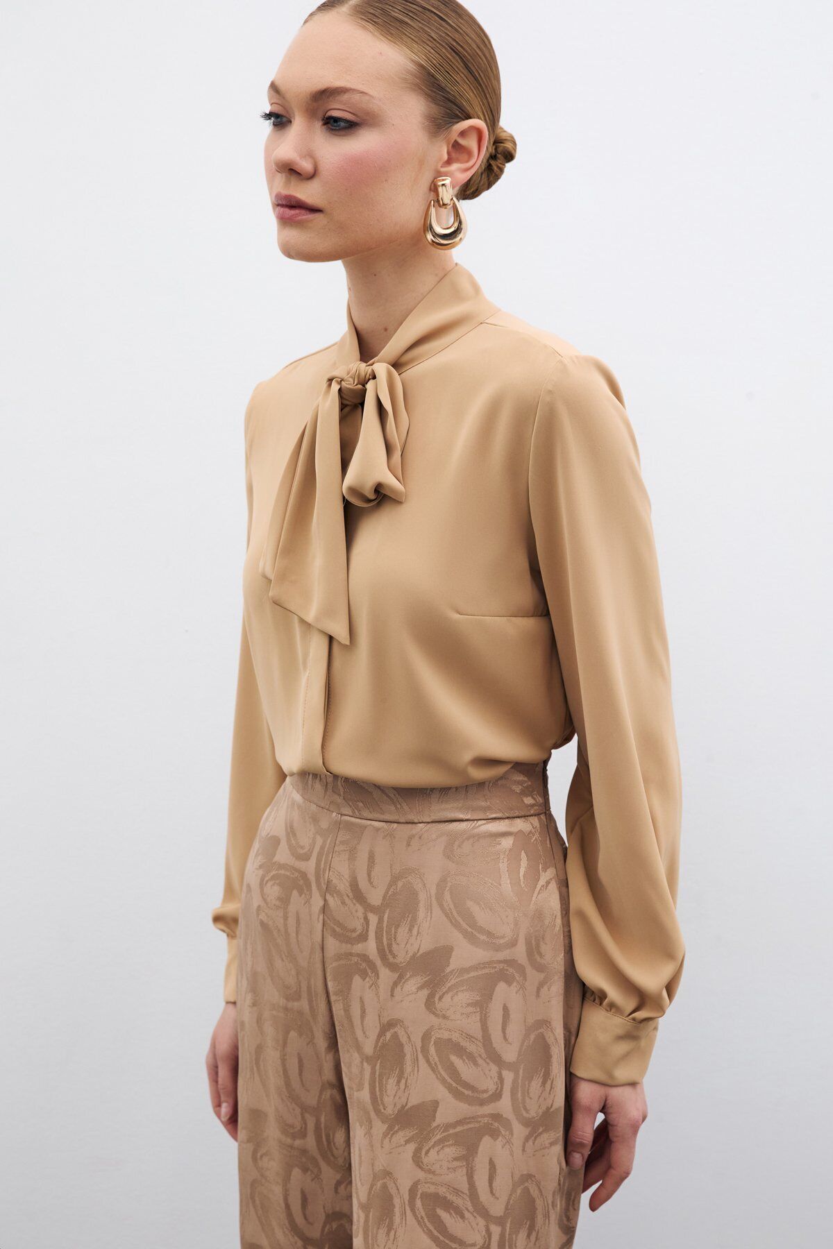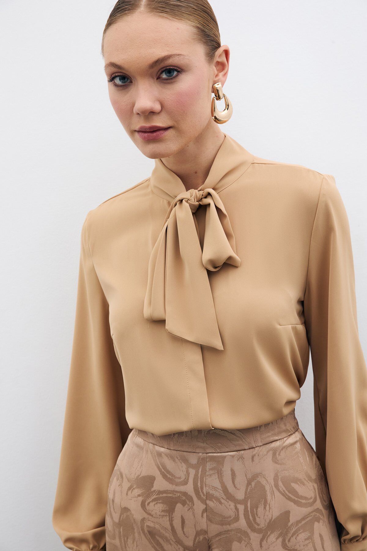 Yakası Bağlamalı Düz Gömlek