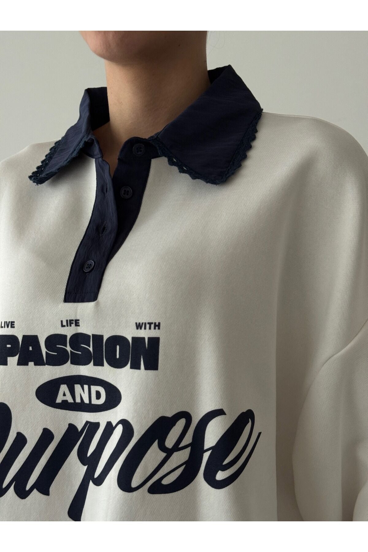 - Zarif dantel detaylarıyla süslenmiş yakası, şıklığınızı ön plana çıkarır.; - Baskılı deseni ile günlük kullanımda rahatlık ve stil sunar.; - Tüm sezonlarda giyilebilen tasarımıyla her zaman modaya uygun bir görünüm sağlar.; - Cepsiz yapısı, minimalist ve sade bir tarz yaratmanıza olanak tanır.; - Günlük ortamlarda rahatlıkla tercih edebileceğiniz ideal bir seçenektir.; - Tek parça olarak sunulan bu sweatshirt, kolay kombin yapma imkanı sağlar.; - Polo yaka tasarımı, klasik ve modern çizgileri bir arada sunar.; - Uzun kollu yapısı ile mevsim geçişlerinde ideal koruma sağlar.; - Relaxed kalıbı sayesinde gün boyu konforlu bir kullanım sunar.; - Yetişkin kadınlar ve kızlar için uygun olan bu sweatshirt, geniş bir kullanıcı kitlesine hitap eder.; - Standart boyu ile farklı vücut tiplerine uyum sağlar.; - Türkiye'de üretilmiş olup, yerel üretim kalitesini yansıtır.;