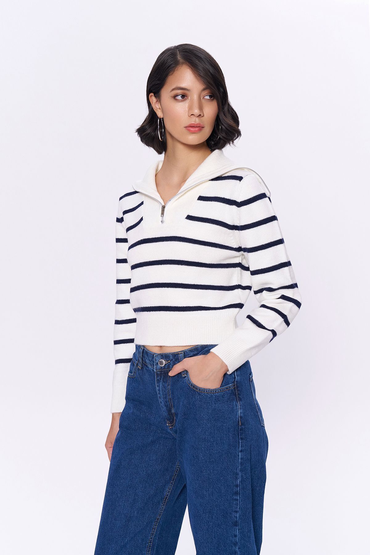 Vücudu saran fitted kalıbı ile şık ve modern bir görünüm sunar; Zamansız çizgili deseniyle her ortamda kolayca kombinlenebilir; Orta kalınlığı sayesinde mevsim geçişlerinde ideal konfor sağlar; Standart boyu ile farklı vücut tiplerine uyum sağlar ve rahat bir kullanım sunar; Uzun kollu tasarımı, kollarınızı tamamen sararak soğuk havalarda ekstra koruma sağlar; Oversize silueti ile rahat hareket etme özgürlüğü verirken, trend bir stil oluşturur; Fermuar detaylı yakası pratik kullanım imkanı sunarken, şıklığınızdan ödün vermezsiniz; Günlük kullanım için ideal olan casual tasarımıyla her ortamda rahatlıkla tercih edilebilir; Triko kumaşı yumuşak dokusuyla gün boyu konforlu bir deneyim vaat eder;