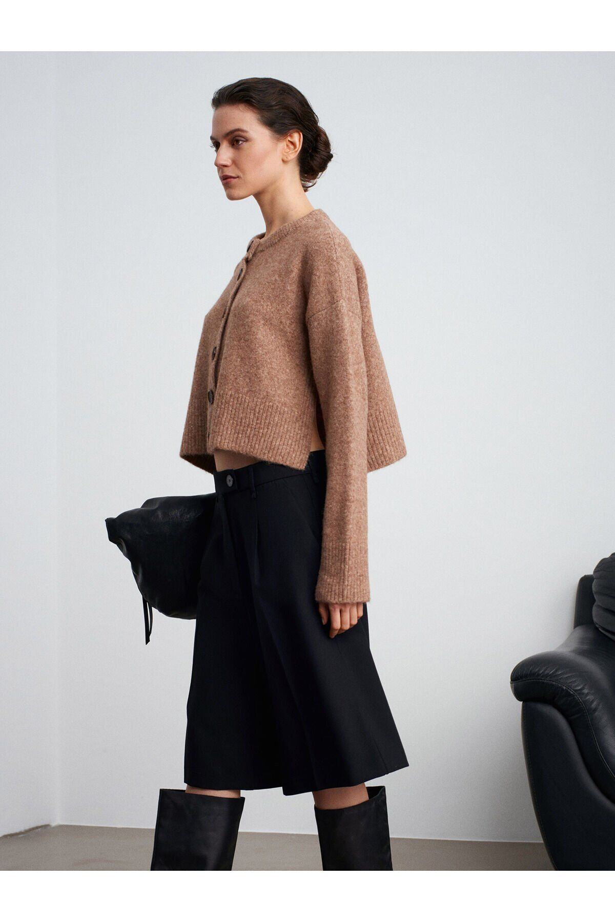 Ürün İçeriği : %43 Polyester %39 Akrilik %9 Poliamid %5 Yün %4 Elastan Mankenin Ölçüleri : Boy : 178 Göğüs : 81 Bel : 59 Kalça : 88 Numune Bedeni : 36/Standart Ürün Ölçüleri : Boy : 50 cm En : 60 cm Kol : 80 cm Yırtmaç : 23 cm