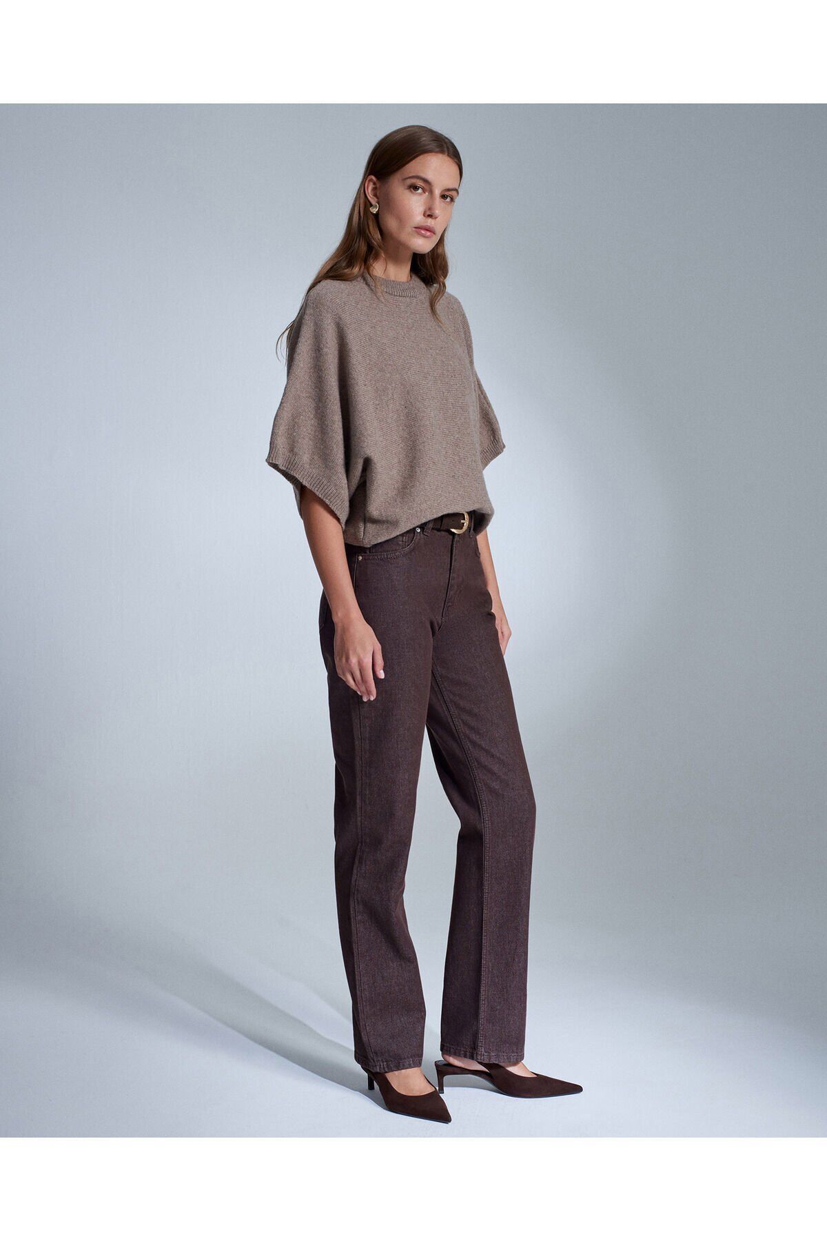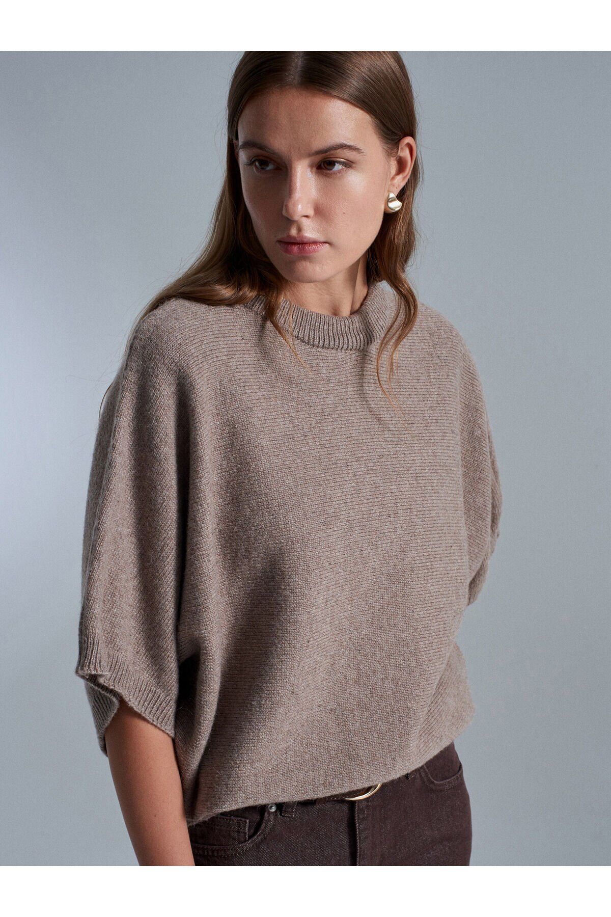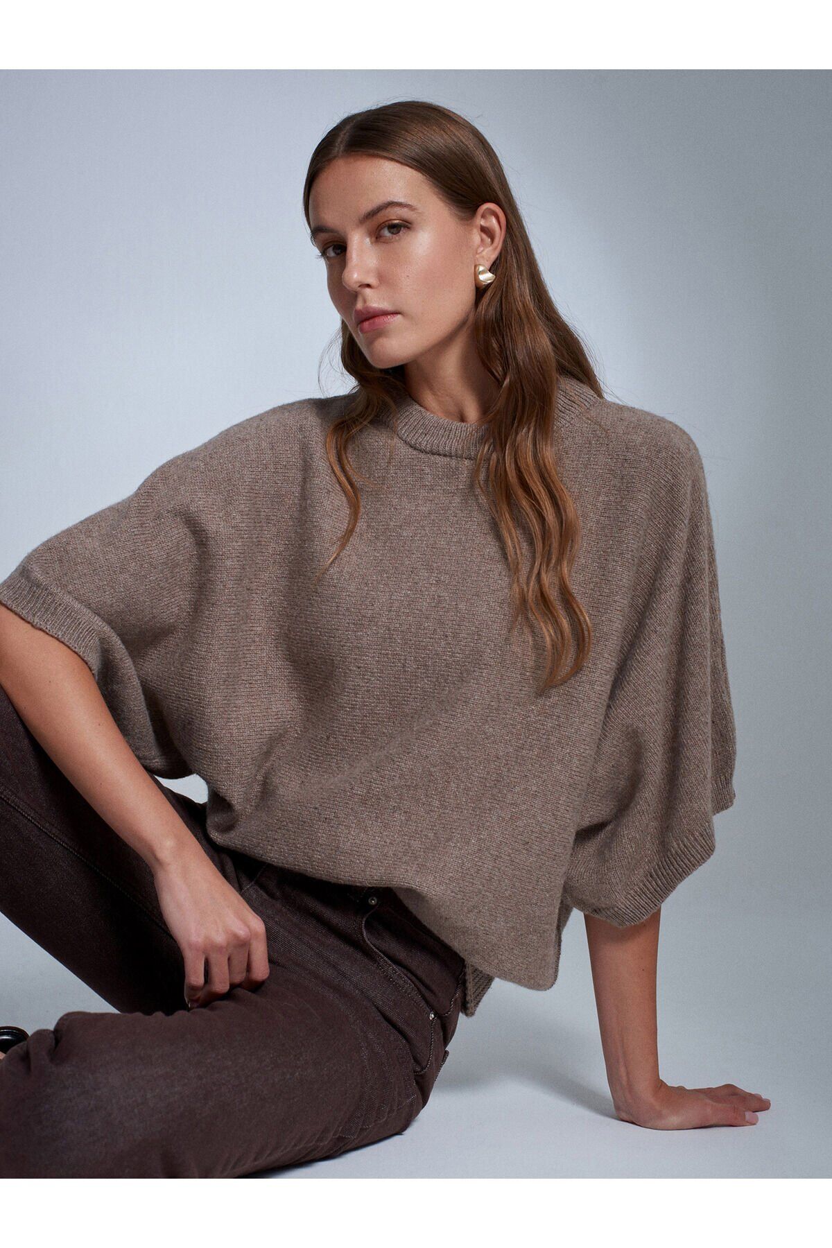 Ürün İçeriği : %45 Polyester %25 Yün %10 Pamuk %10 Akrilik %10 Poliamid Mankenin Ölçüleri : Boy : 177 Göğüs : 83 Bel : 59 Kalça : 89 Numune Bedeni : 36/Standart Ürün Ölçüleri : Boy : 64 cm En : 55 cm Kol : 43 cm