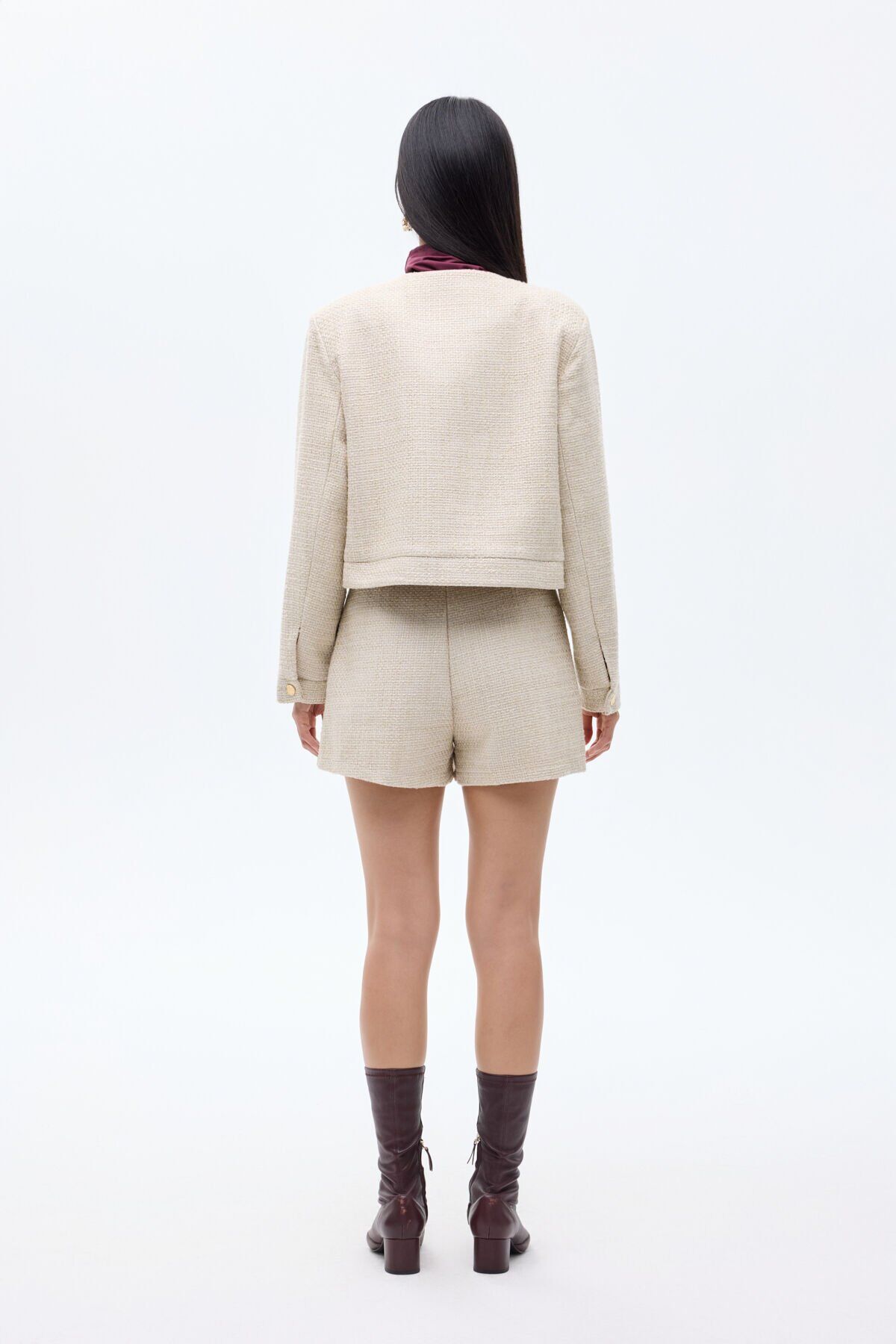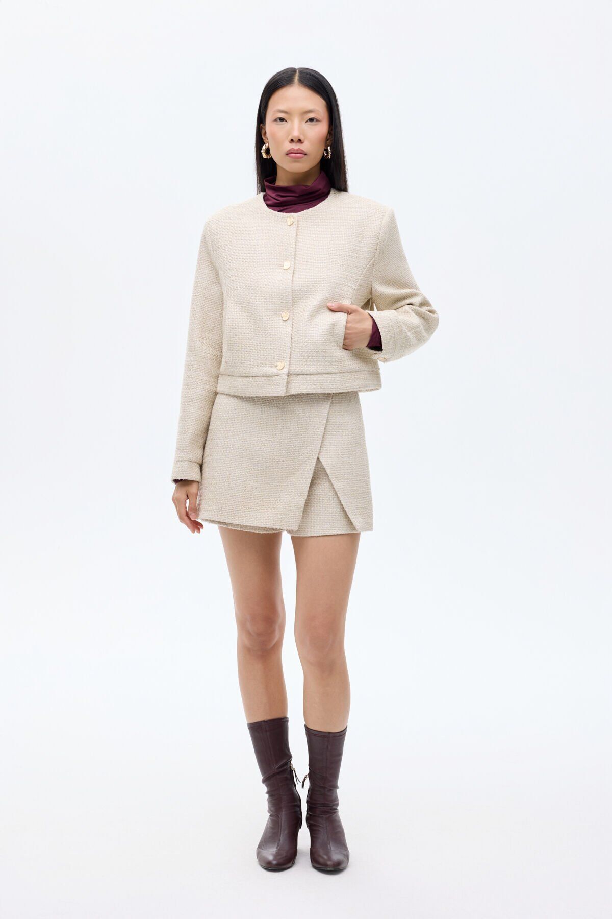 Yuvarlak Yaka Düğmeli Tüvit Ceket
