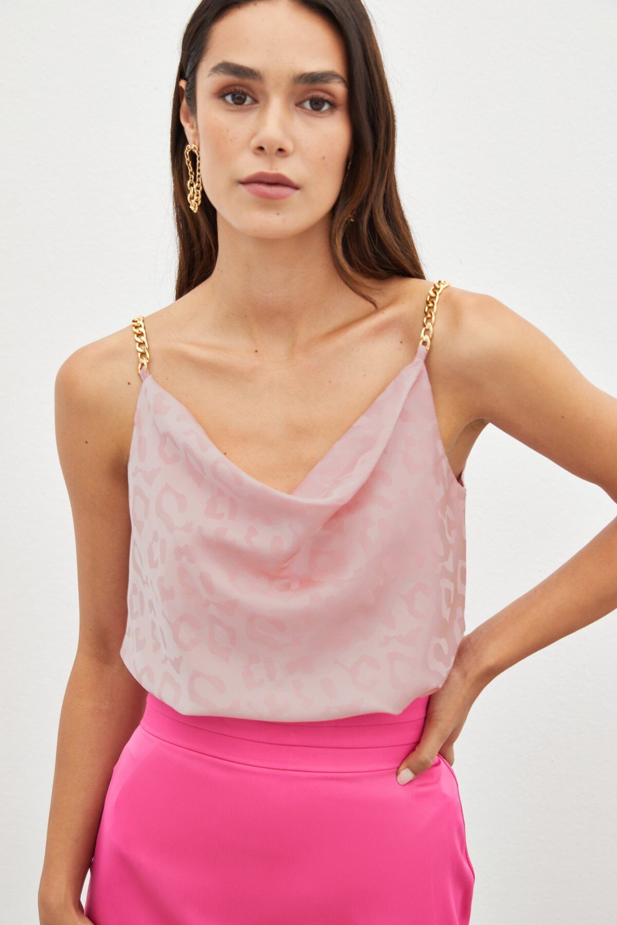 Zincir Askılı Saten Bluz